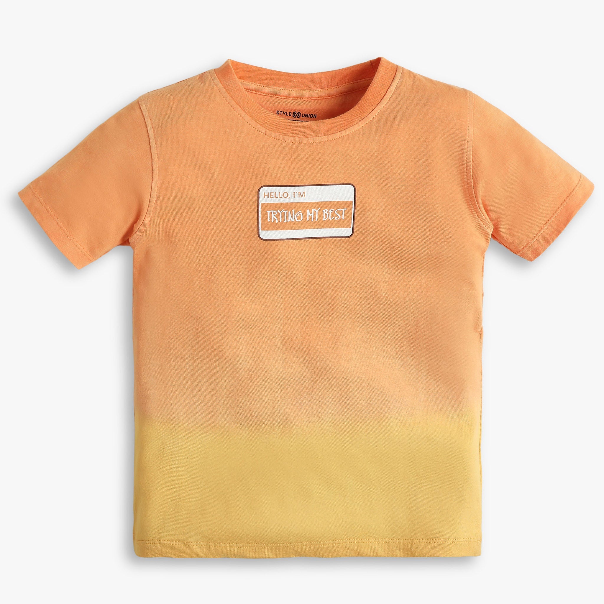 These tie - dye pattern t-shirt has crew neck and half sleeve. Made from cotton, your kid's feel comfortable wearing the product.