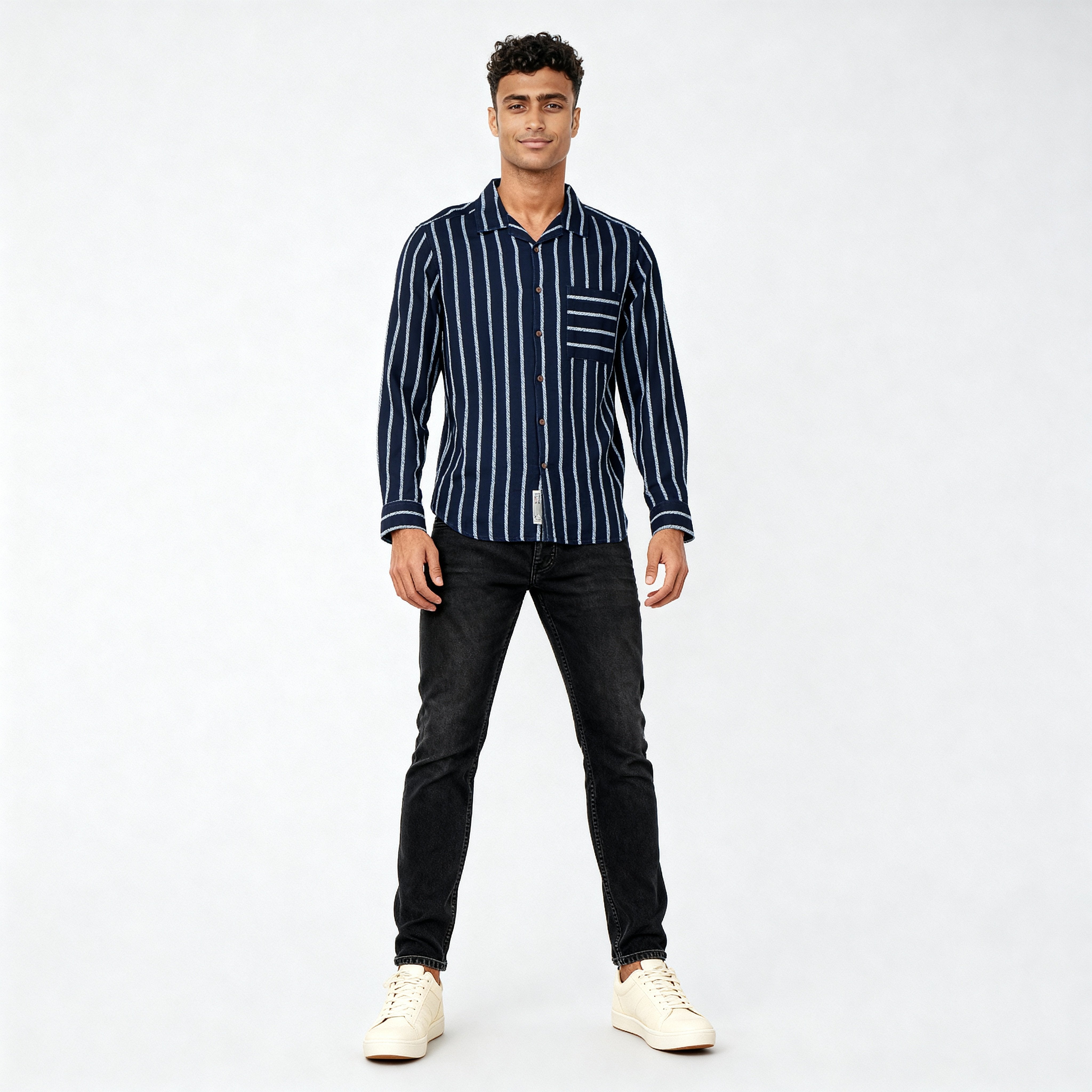 Introducing the Cotton Striped Cruiser Shirt, a stylish yet versatile choice for men. Crafted from high-quality woven cotton, this shirt combines comfort with a classic striped pattern, making it perfect for both casual and semi-formal occasions.