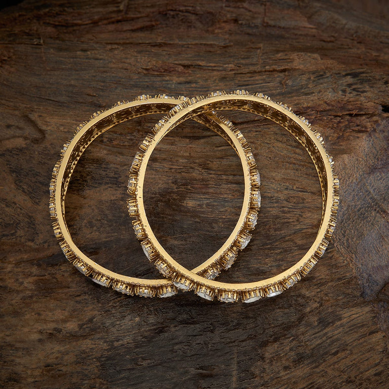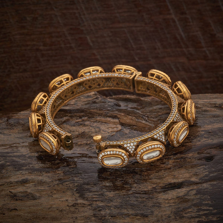 Kushal's Fashion Jewellery Kundan BangleOne look at our latest heavily studded Kundan bangle is enough to mesmerize you with its beauty and charm. This bangle has magnificent designs and work details to make all eyes rest on you. All you have to do is wear this dazzling bangle with your favorite outfit and watch how all heads turn toward you.