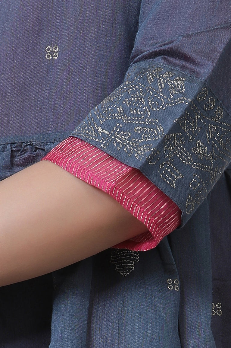 Chanderi lends its trademark softness and light sheen to this blue A-line kurta. The floral print adds seasonal freshness, making it ideal for brunches, day outings, or cultural office events. With no dupatta or bottom attached, this standalone kurta allows creative styling, wear it with palazzos, leggings, or cigarette pants. The silhouette ensures ease of wear while maintaining visual balance. A dependable addition to your ethnicwear lineup for its style and simplicity.