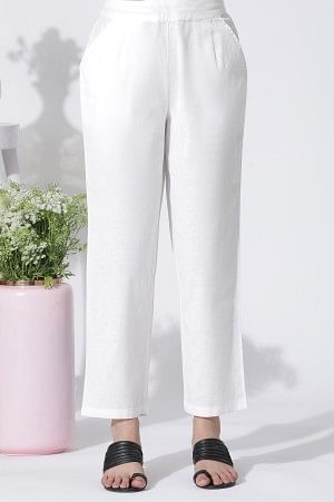 Revamp Your Traditional Wardrobe With This Elegant Yet Stylish White kurta Set. This Contemporary Set Includes Black Chanderi kurta In Floral Motifs And A-Line Silhouette. It Is Coordinated With Black Slim Pants In Mid-Rise And Partially Elasticated Waistband.