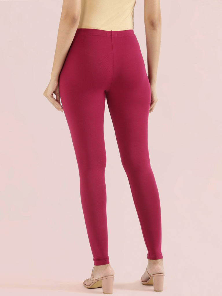 Dark Fuchsia Cotton Stretch Ankle Length Leggings