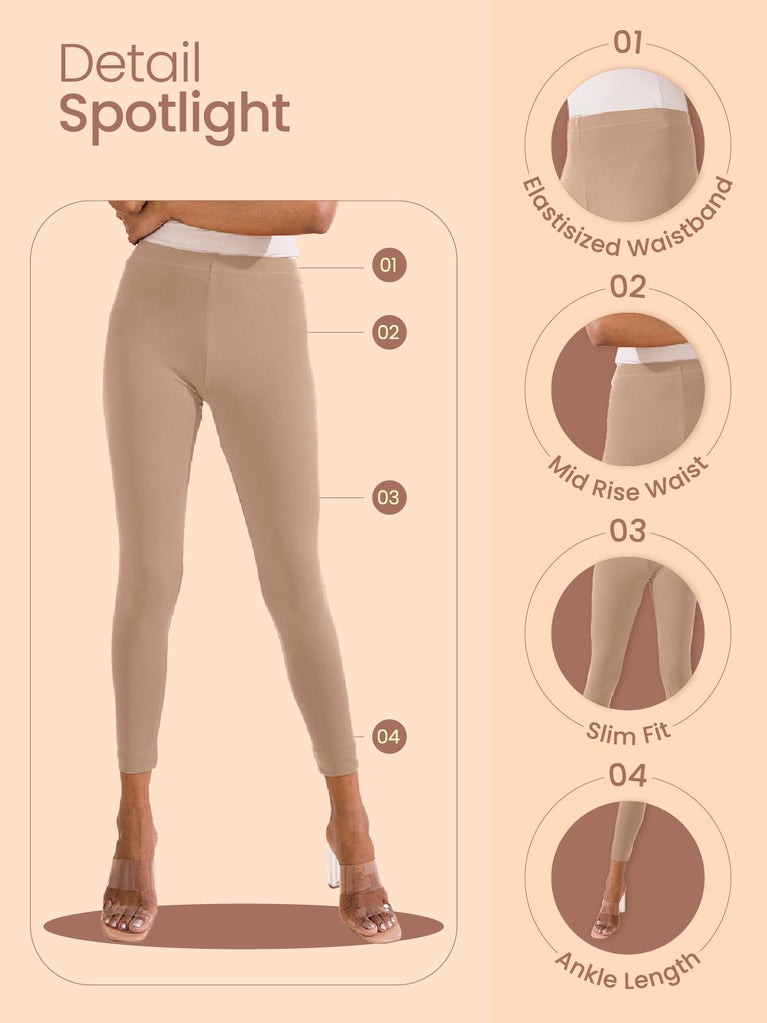 Dark Beige Cotton Stretch Ankle Length Leggings