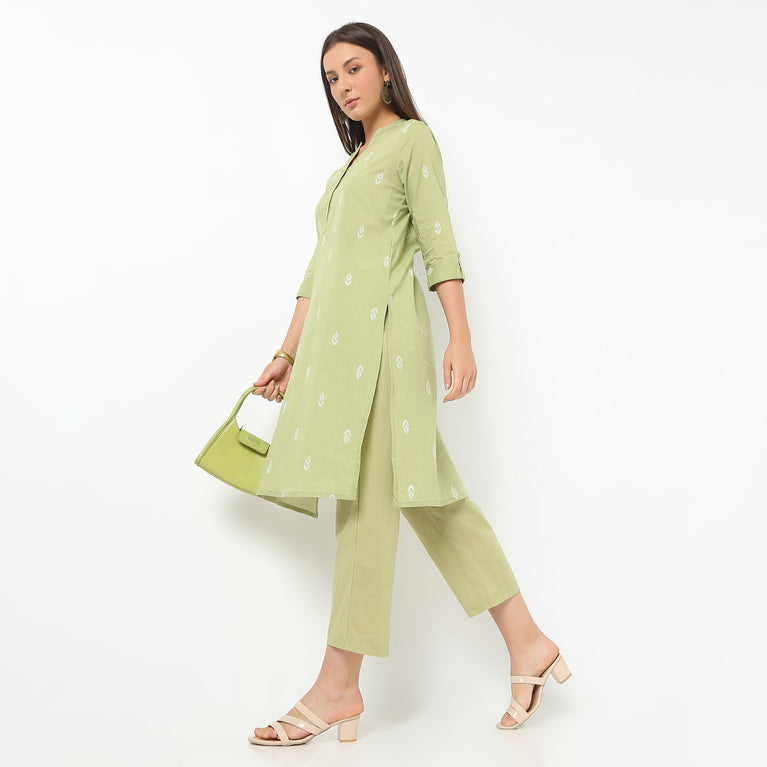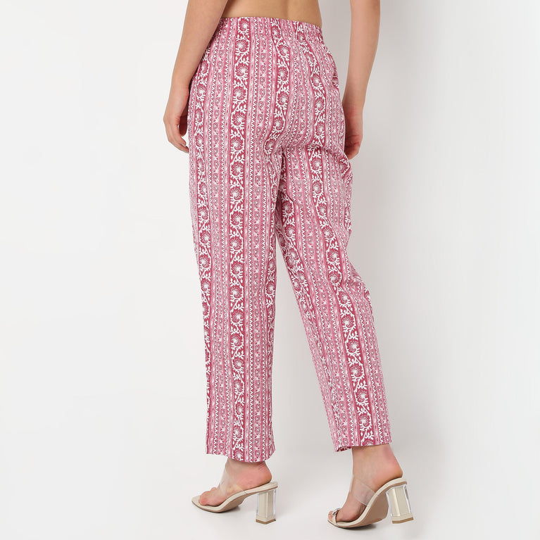 These solid pattern regular fit trousers has ankle length, high rise waist. Made from polyester, it is soft and comfortable to wear.