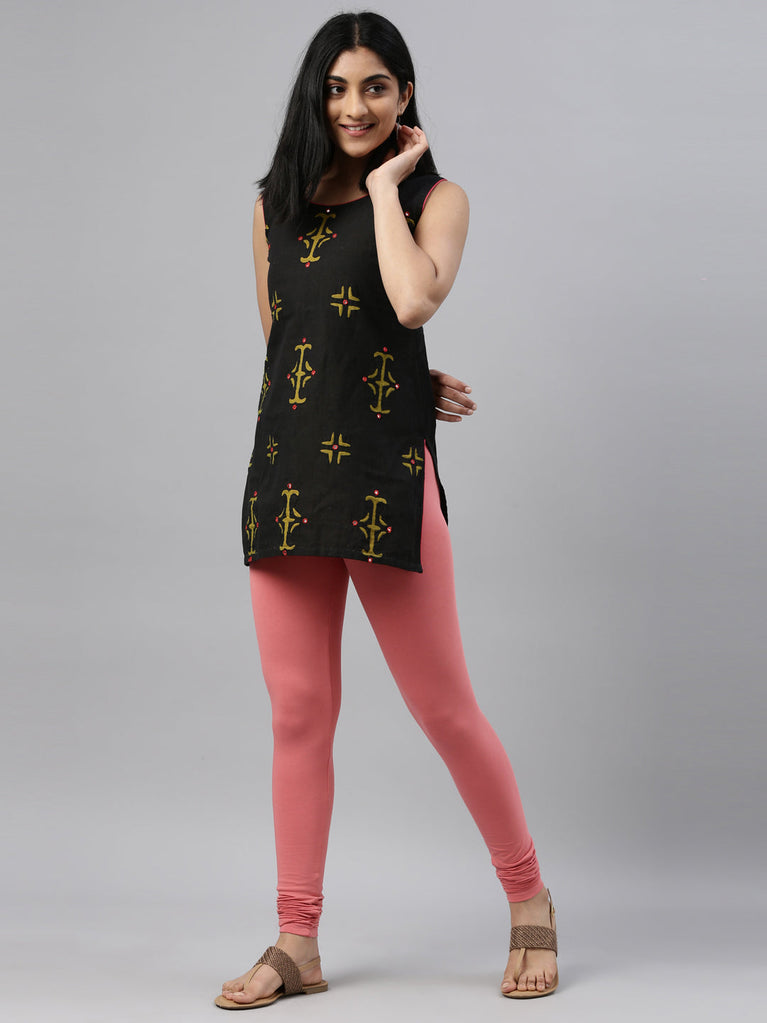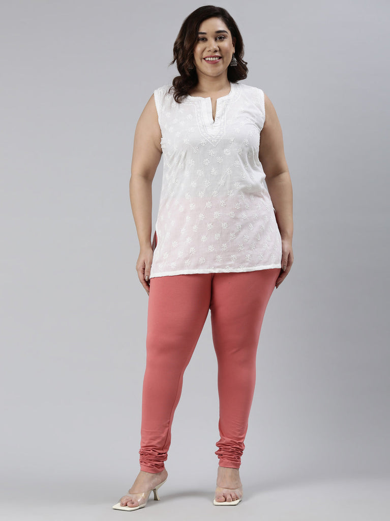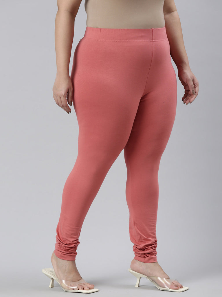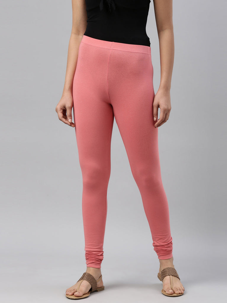 Go chic with a pair of Dusty Rose Solid Churidar Leggings. Made from high quality cotton, it has a elasticised waistband & gathers at the hemline