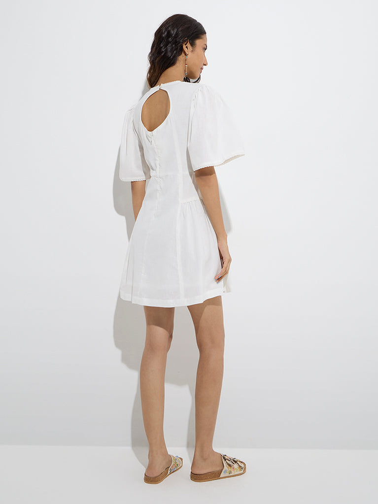 Bombay Paisley White Crochet-Detailed A-Line Cotton Dress