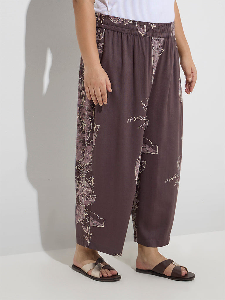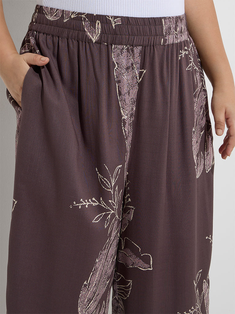 Diza Dark Brown Foliage Design Ethnic Pants
