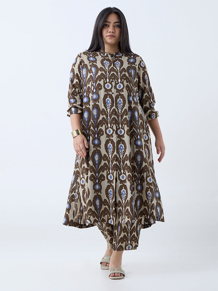 Diza Brown Ikat Printed A-Line Kurta