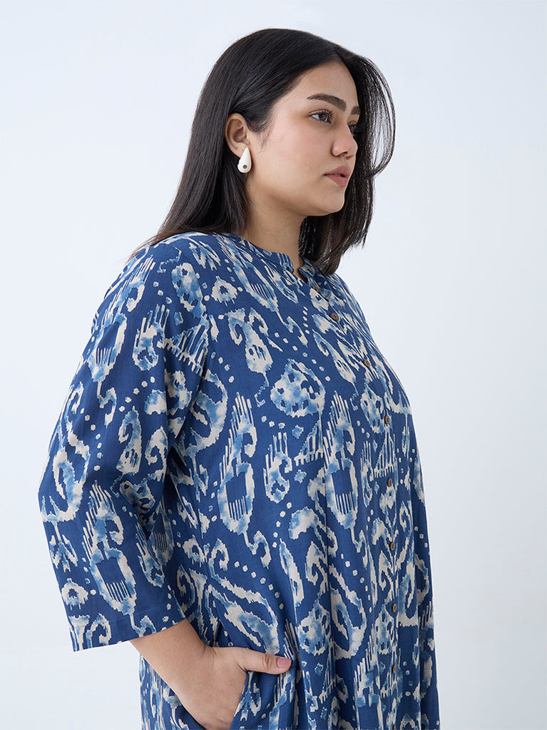 Diza Dark Blue Ikat Design A-Line Kurta