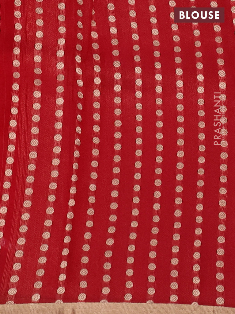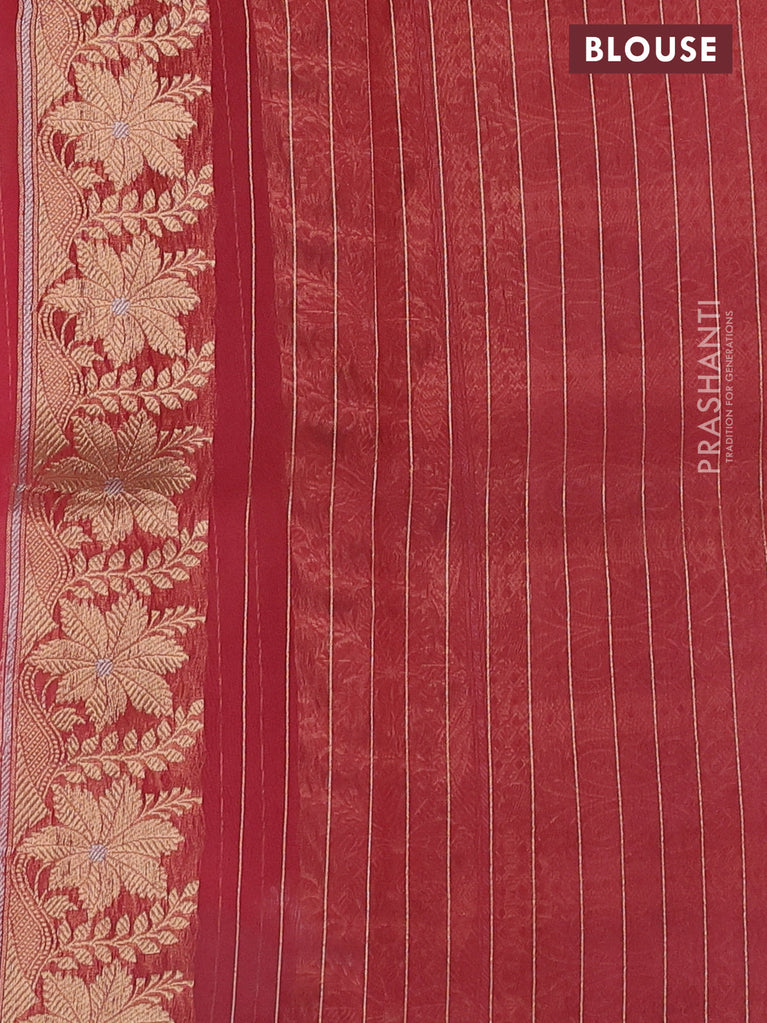 Banarasi organza silk saree red with silver & gold zig zag weaves and zari woven border