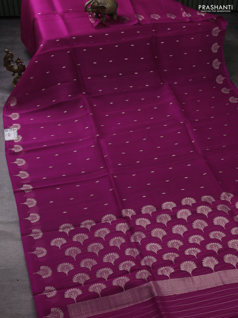Banarasi organza silk saree maroon with allover silver & gold zari weaves and zari woven border