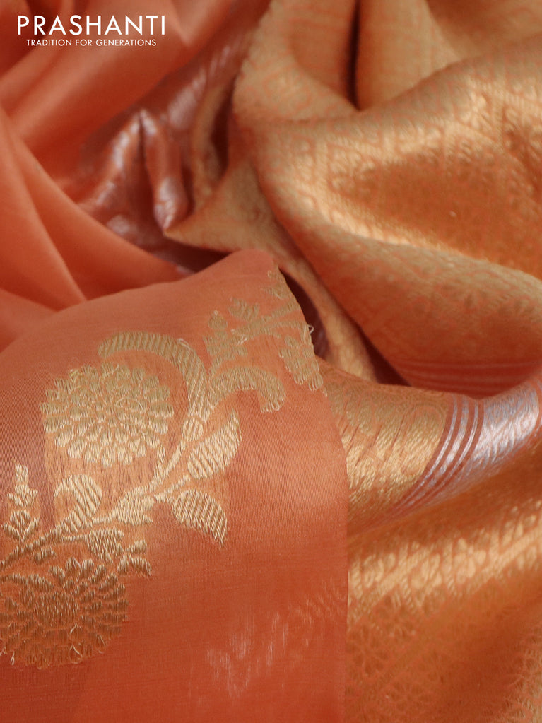Banarasi organza silk saree pale orange with silver & gold zari weaves and zari woven simple border
