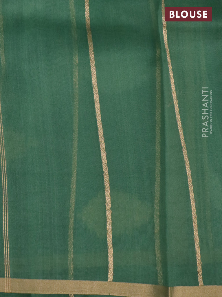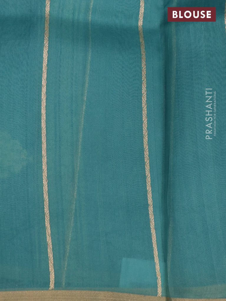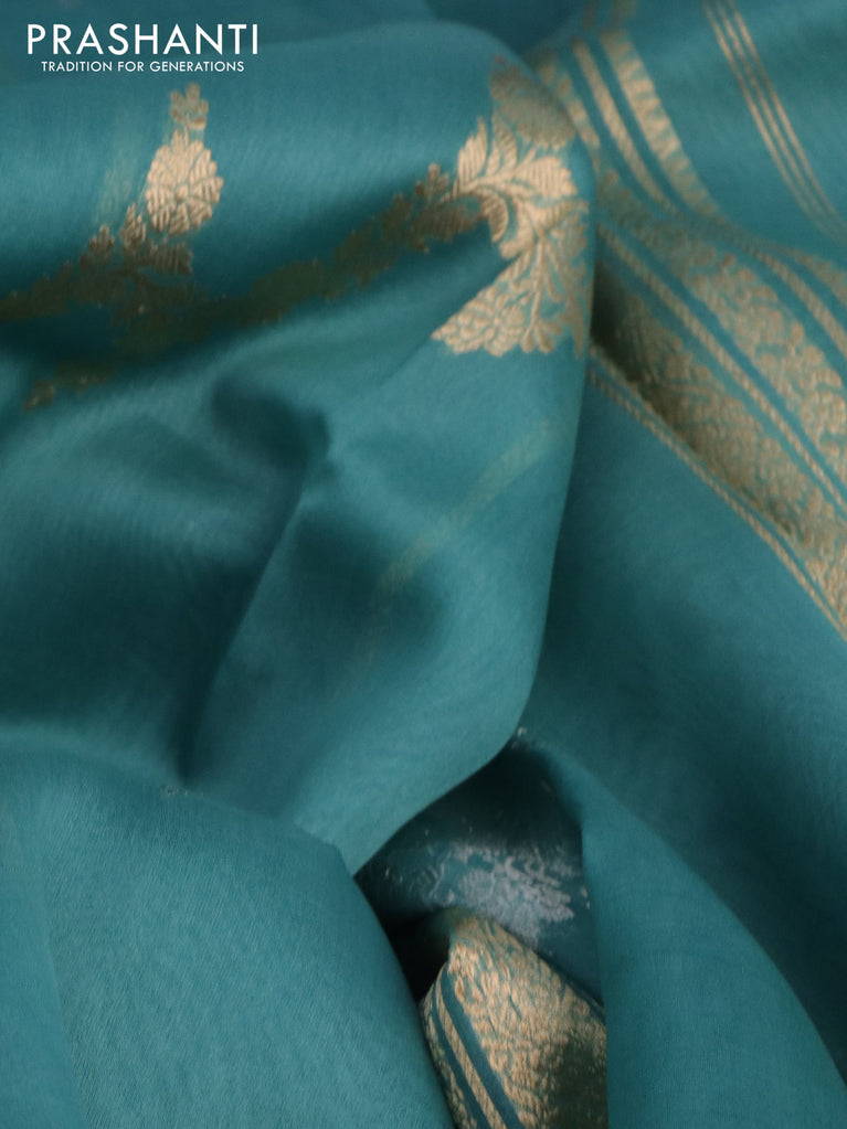 Banarasi organza silk saree teal green shade with silver & gold zari weaves and zari woven piping boder
