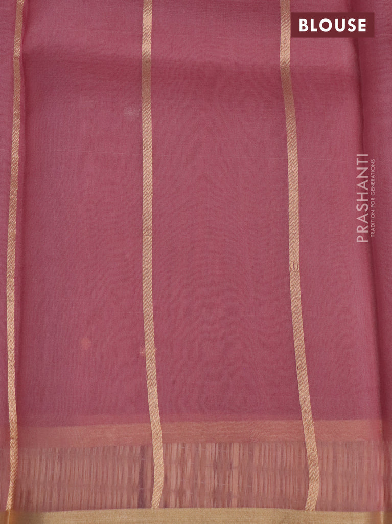 Banarasi organza silk saree pastel pink and maroon with allover silver & gold zari weaves in borderless style