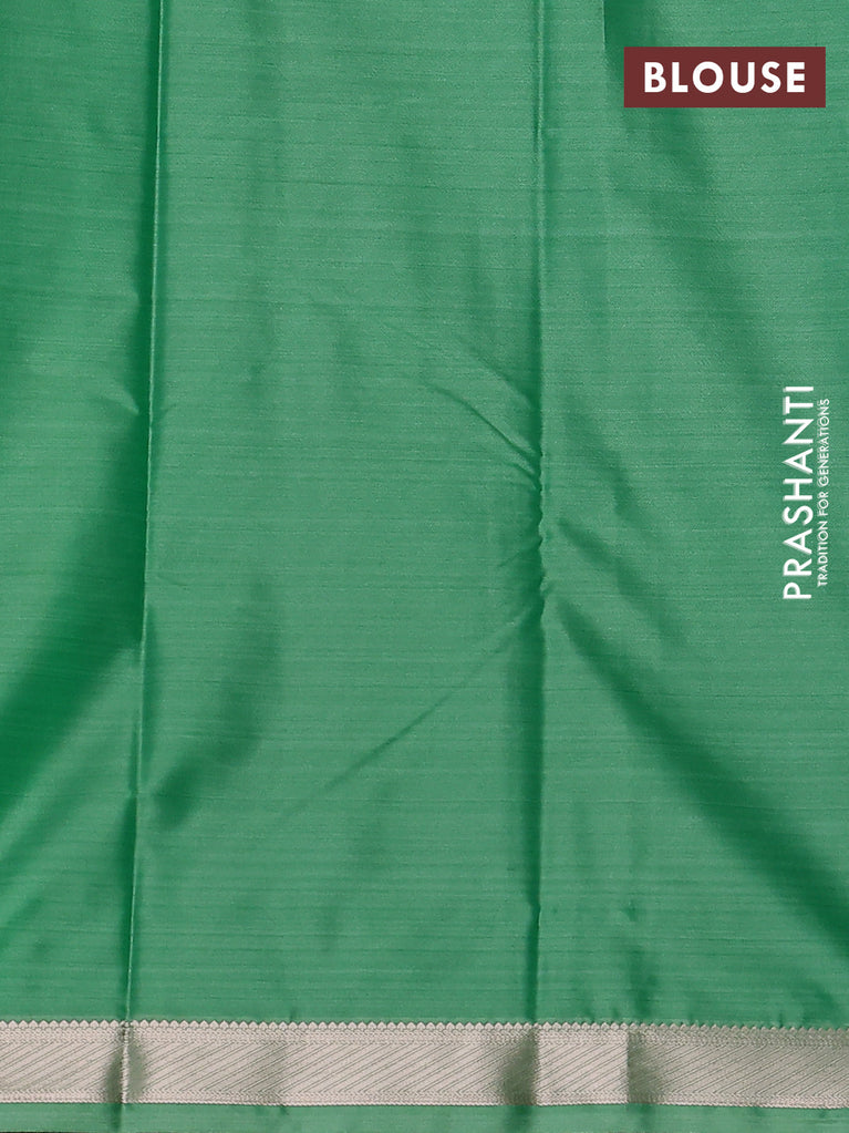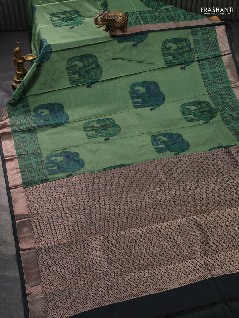 Bangalori semi silk saree green with allover elephant butta ikat weaves and zari woven border