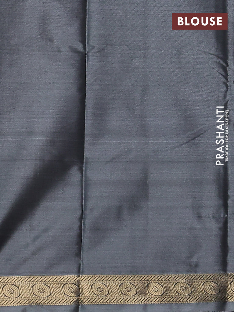 Bangalori semi silk saree grey with allover floral ikat weaves and zari woven border