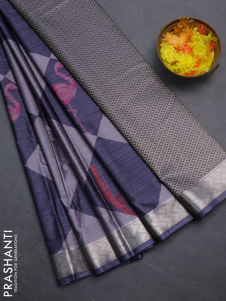 Bangalori semi silk saree lavender and violet shade with allover elephant ikat butta weaves and zari woven border