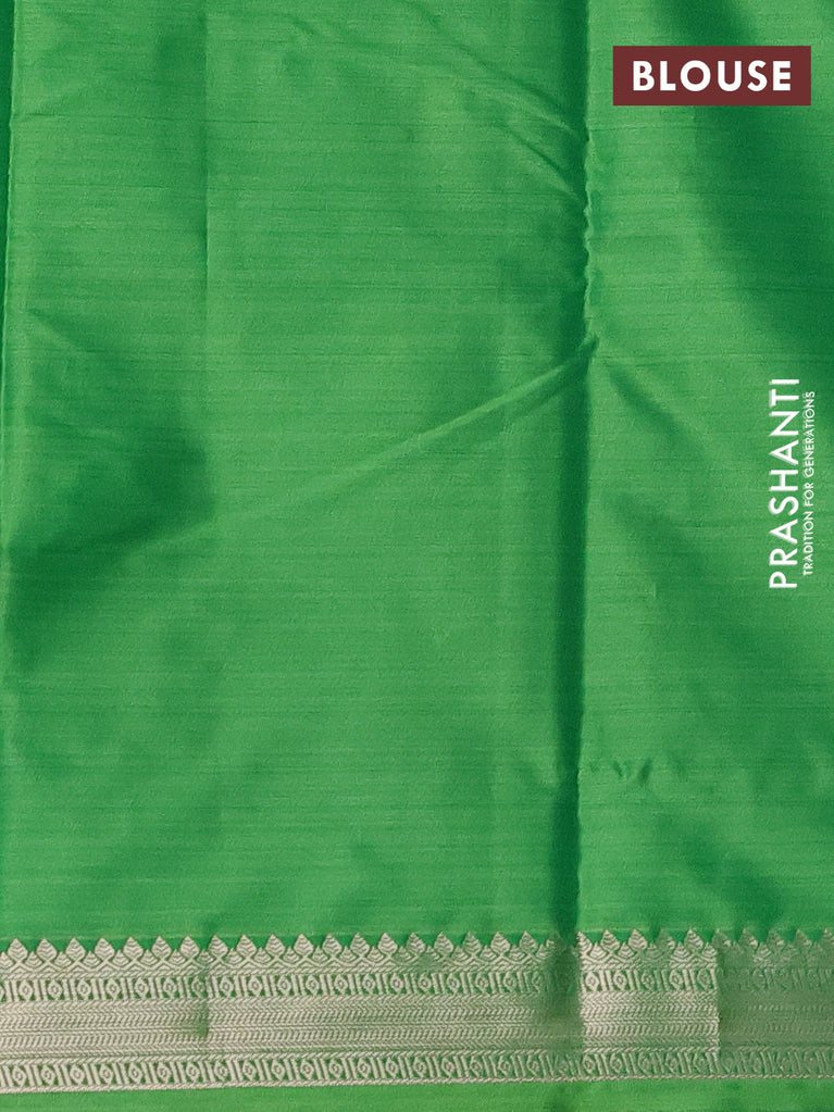 Bangalori semi silk saree elaichi green and violet with allover ikat weaves and zari woven border
