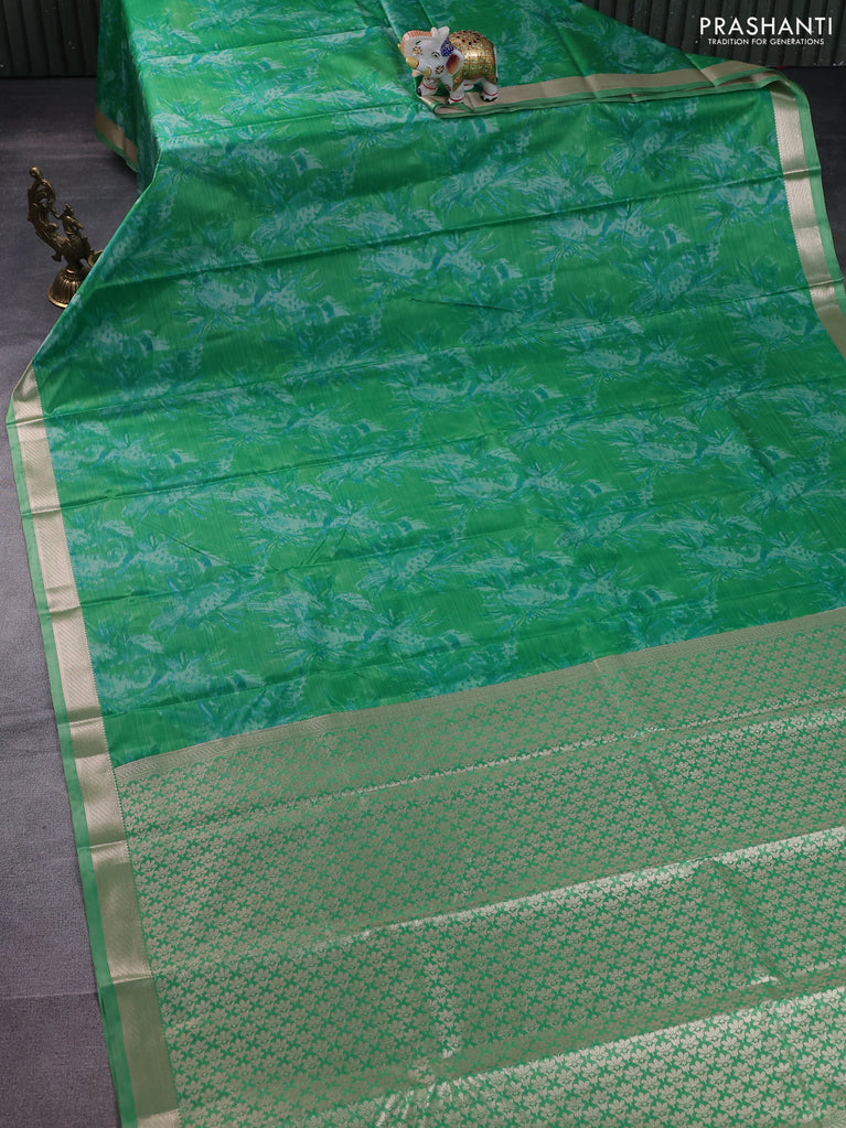 Bangalori semi silk saree green with allover ikat weaves and zari woven border
