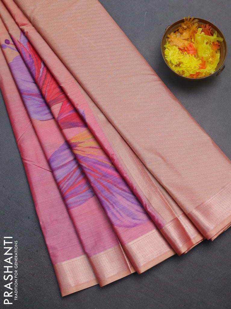 Bangalori semi silk saree dual shade of sandal and pink with allover ikat weaves and zari woven border