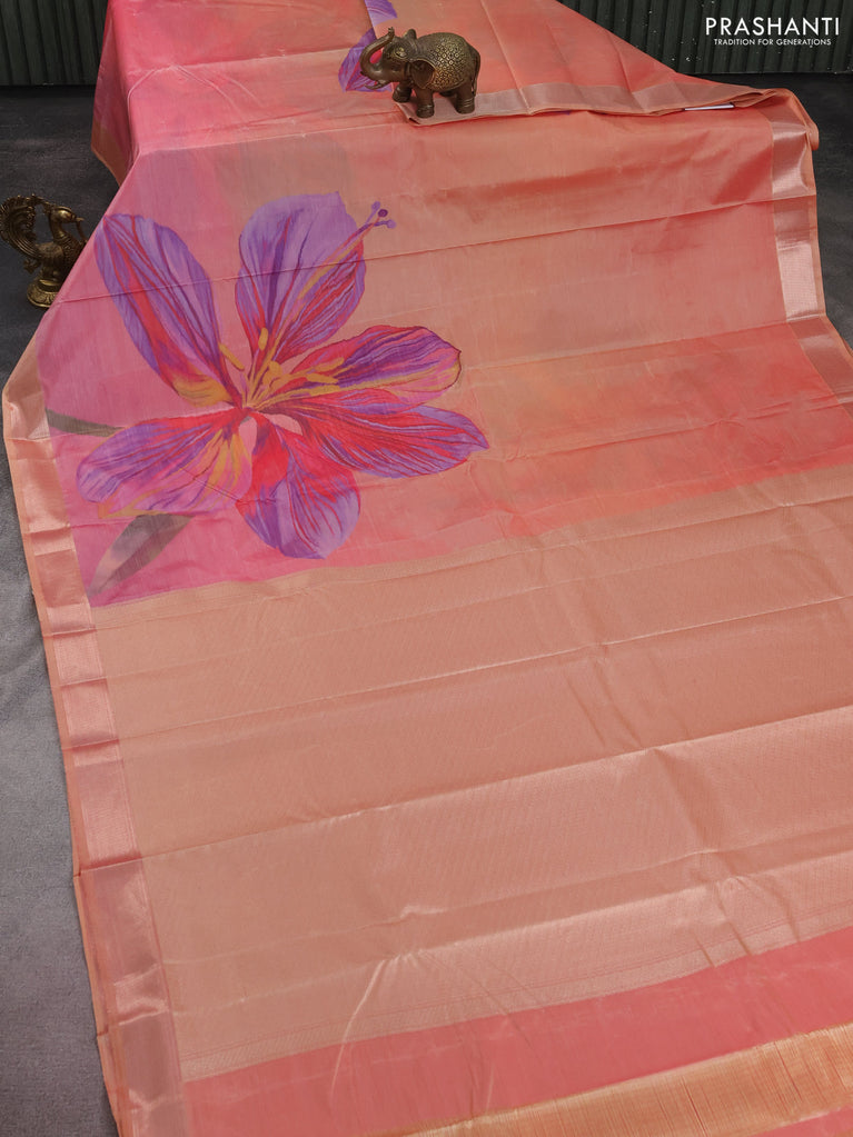 Bangalori semi silk saree dual shade of pinkish yellow and dark magenta pink with allover ikat butta weaves and zari woven border
