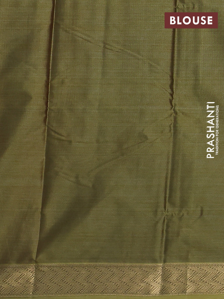 Bangalori semi silk saree greyish green and dark sap green with allover ikat weaves and zari woven border