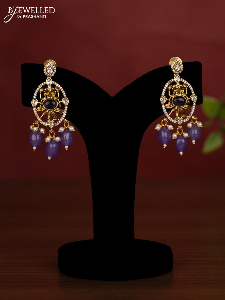 Beaded double layer violet necklace ganesha pendant with cz stones and pearl & beads hanging in victorian finish