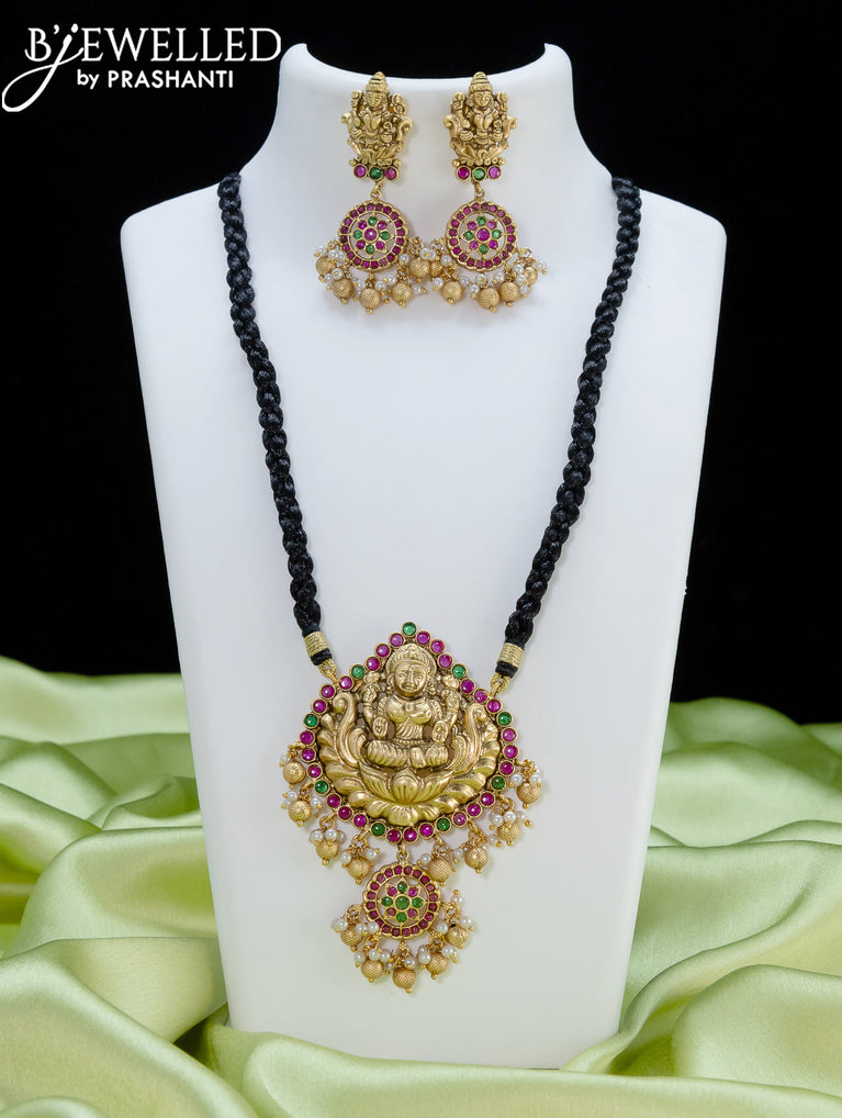 Black thread necklace lakshmi design with kemp and golden beads hanging