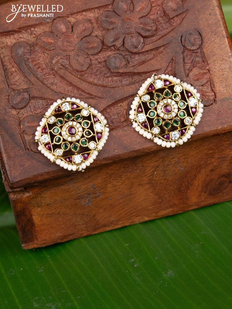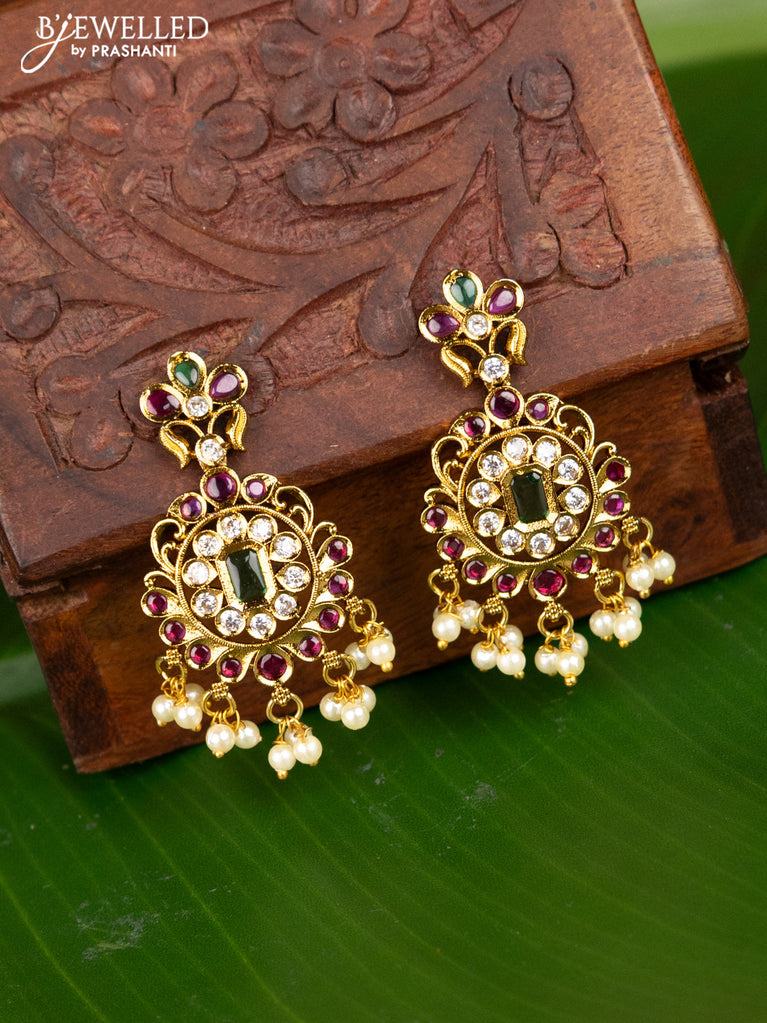 Antique earing flower design with kemp & cz stones and pearl hangings