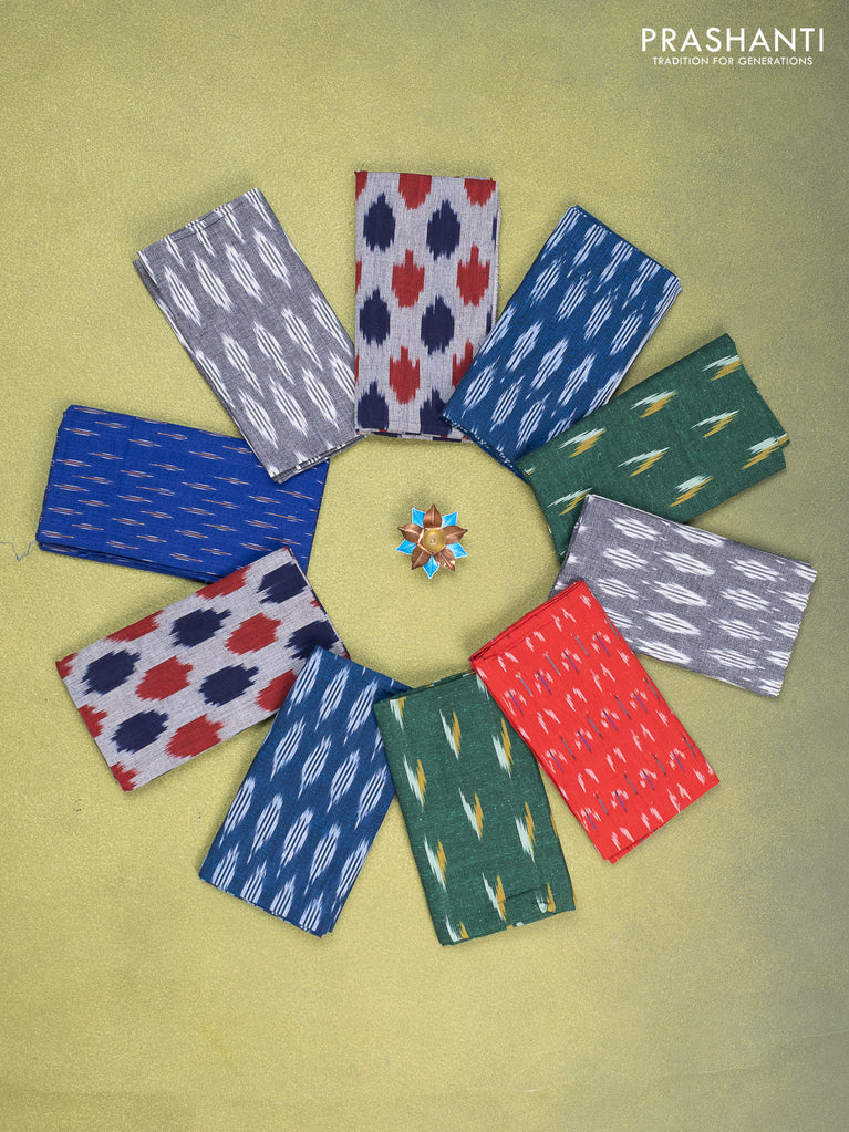 Ikat cotton blouse bits multi colour and multi design Pack of 10