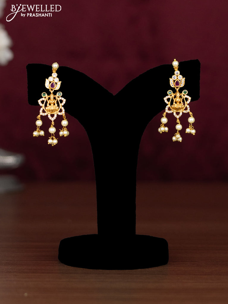 Antique guttapusalu necklace lakshmi pendant with kemp & cz stones and pearl & beads hanging