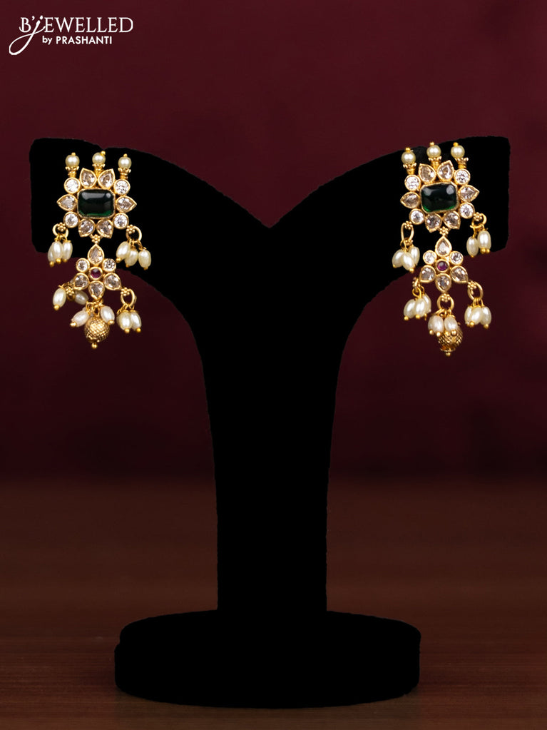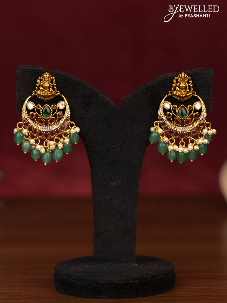 Antique guttapusalu necklace chandbali & manga design with kemp & cz stones and pearl hangings