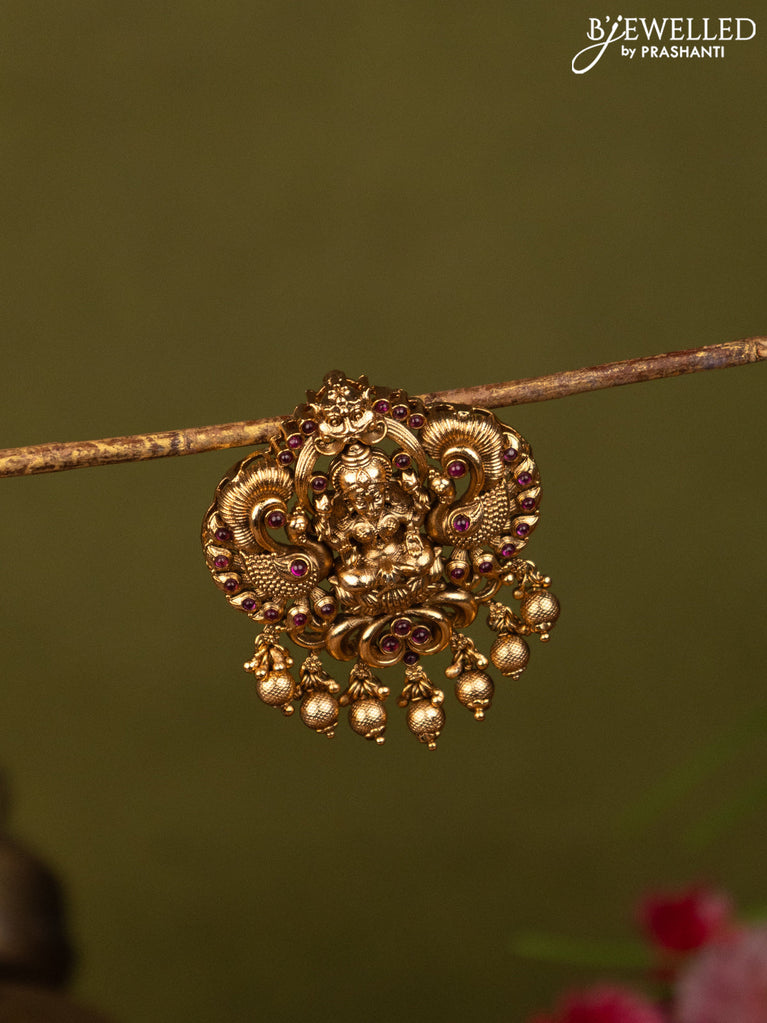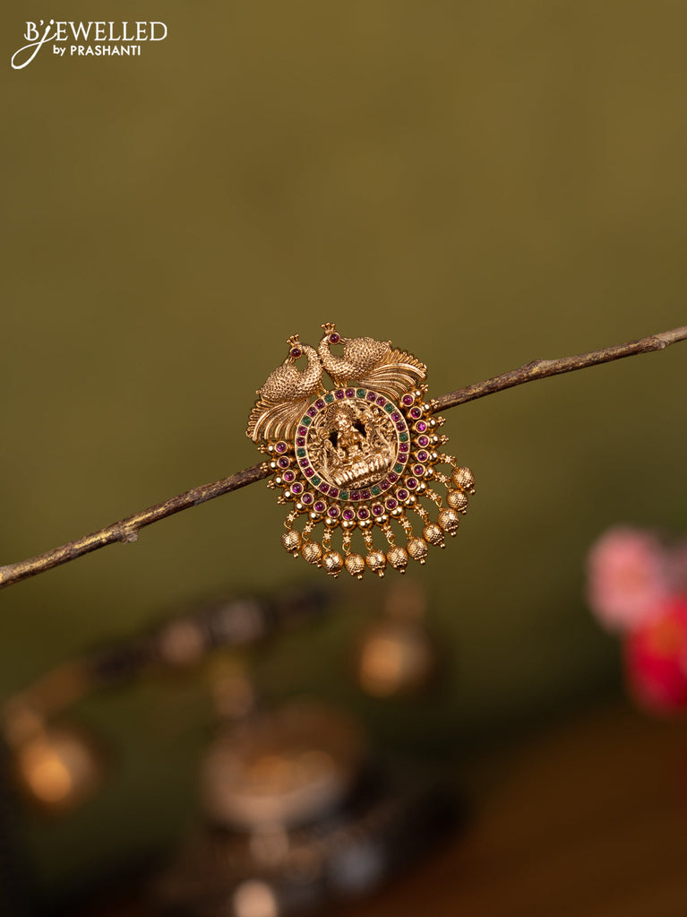 Antique jada billai lakshmi & peacock design with pink kemp stones and golden beads hangings