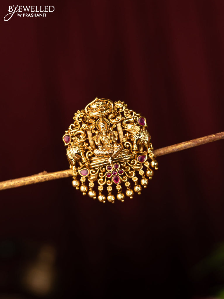Antique jada billai lakshmi design with pink kemp stones and golden beads hanging