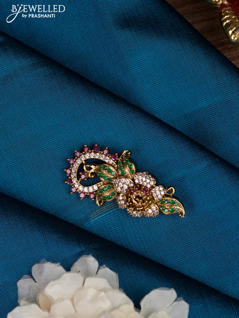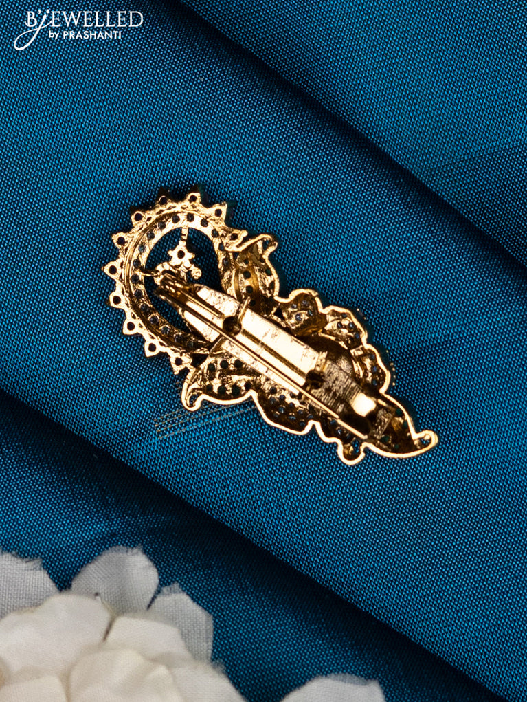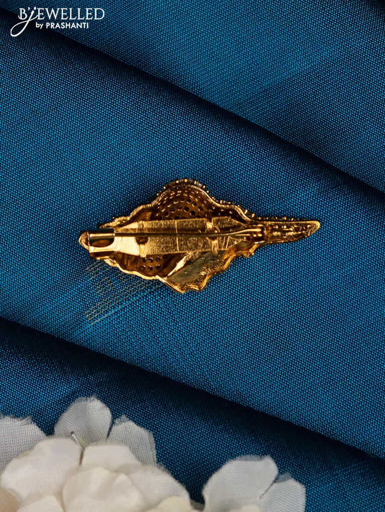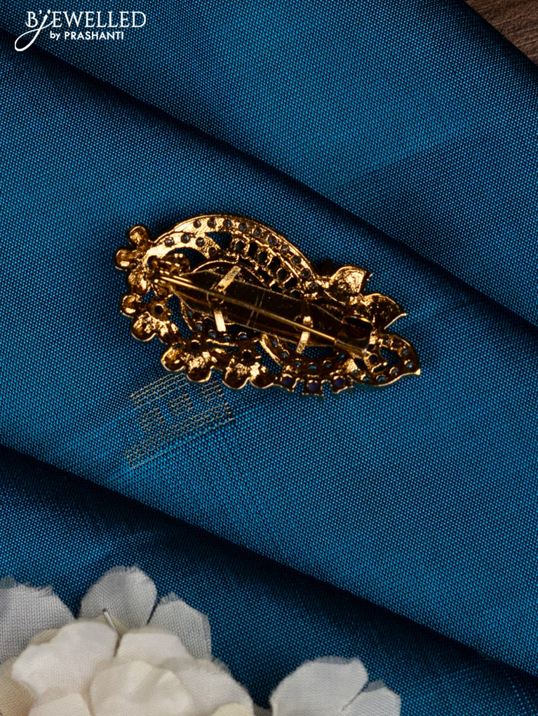 Antique saree pin kalasha & peacock design wih kemp and cz stones