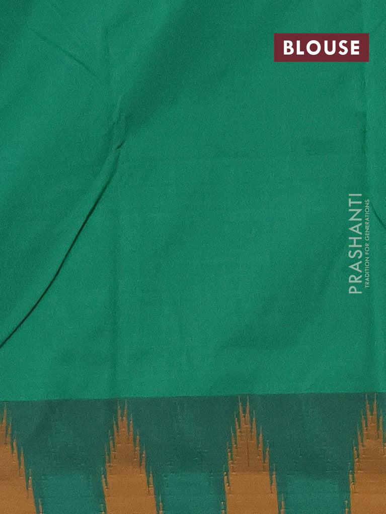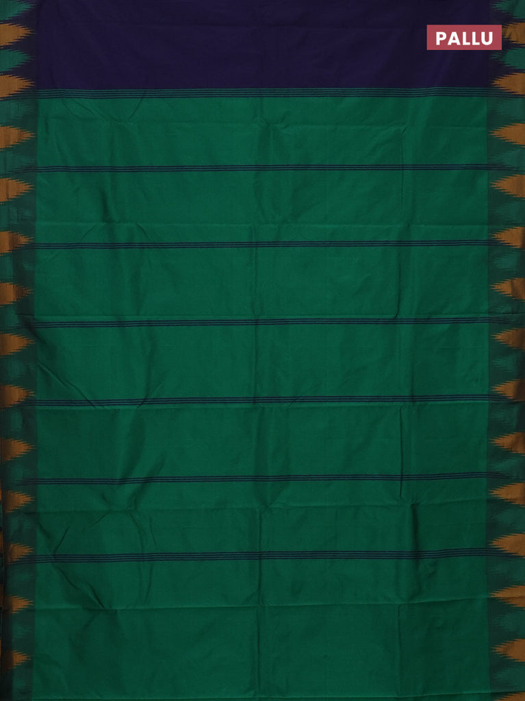Arani semi silk saree navy blue and green mustard yellow with plain body and temple design border