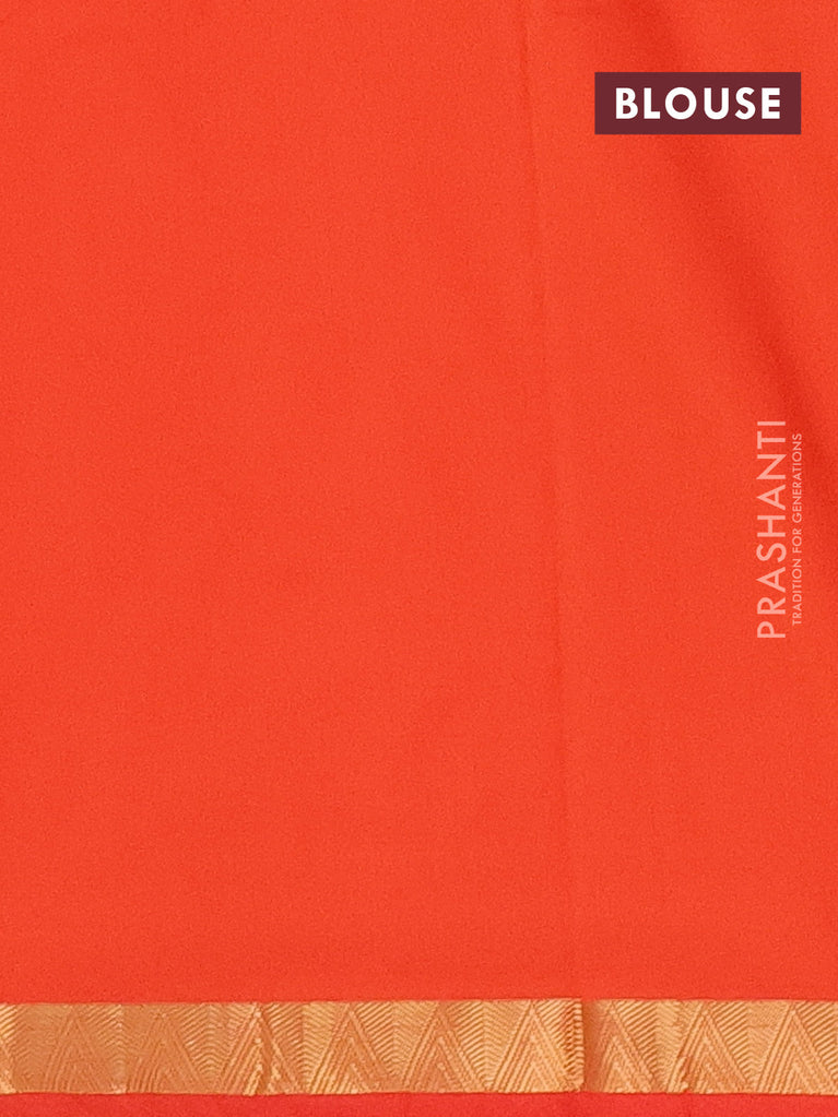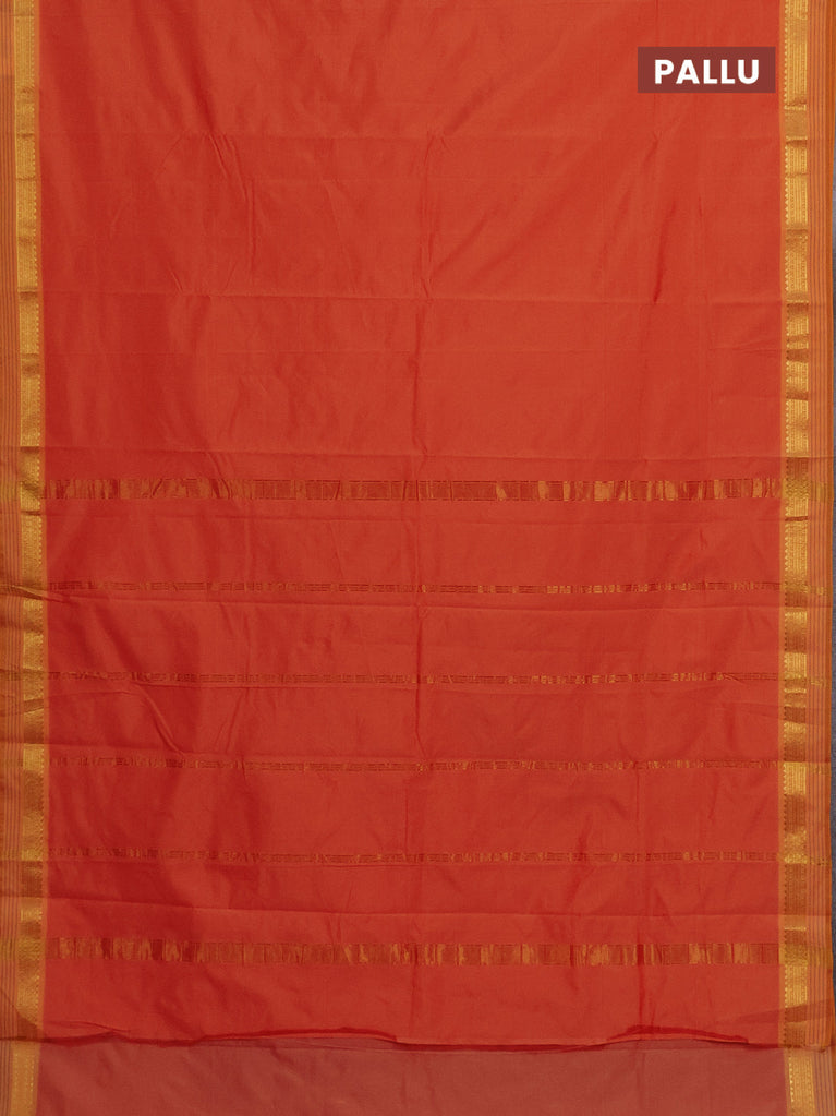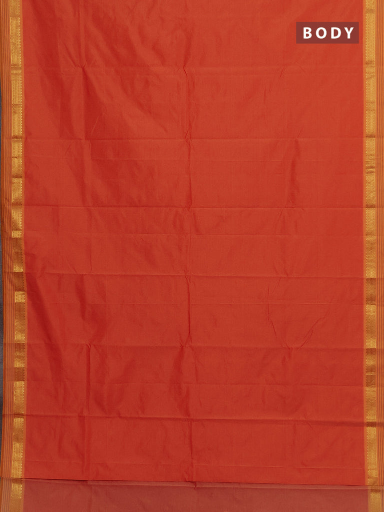 Arani semi silk saree orange with plain body and small zari woven border