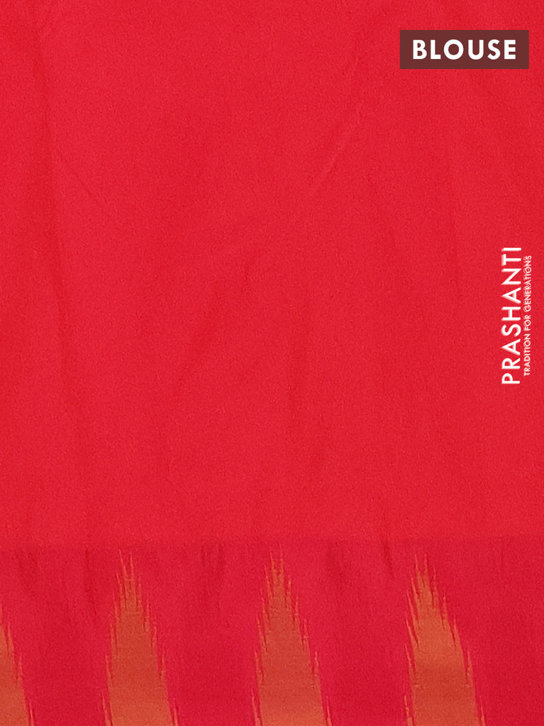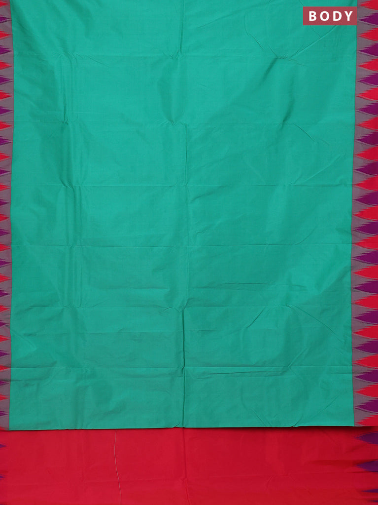 Arani semi silk saree teal blue and pink with plain body and temple design border