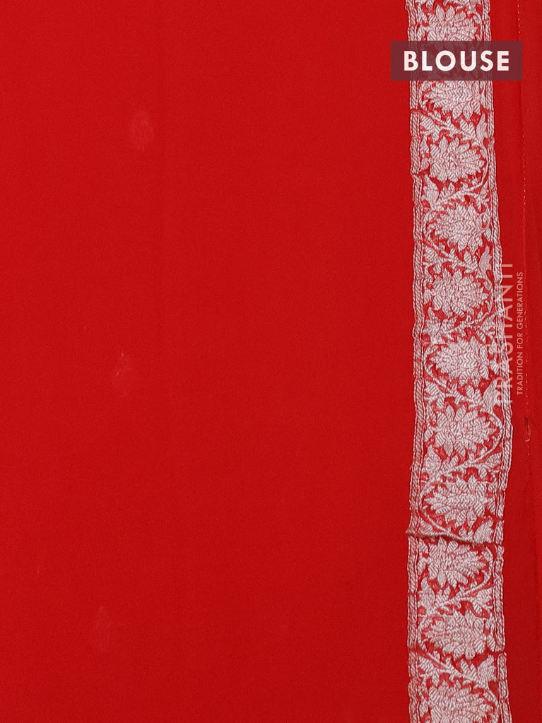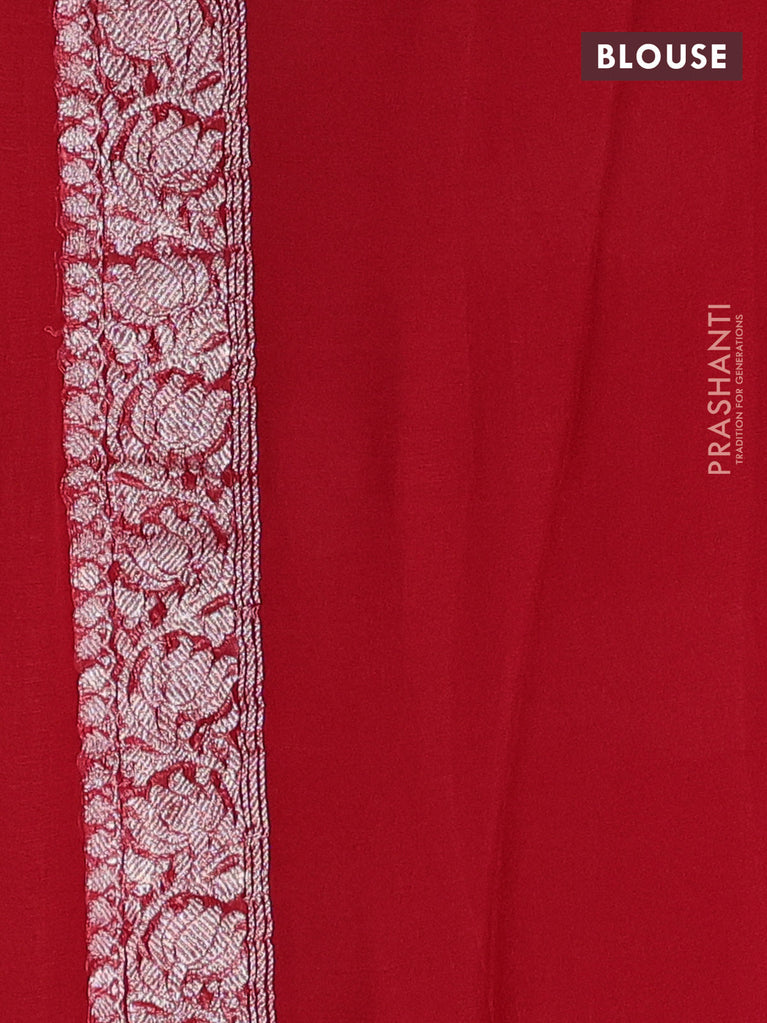 Banarasi chiffon silk saree red with silver zari woven buttas and floral silver zari woven border