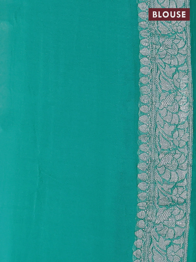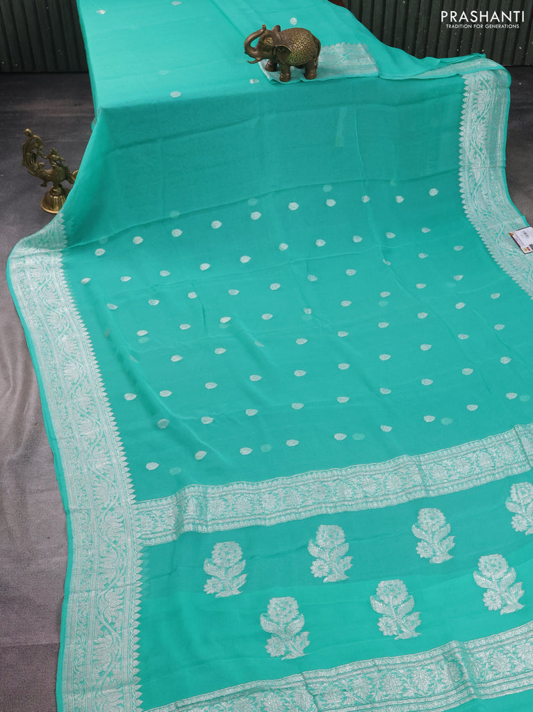 Banarasi chiffon silk saree teal green shade with silver zari woven buttas and silver zari woven border