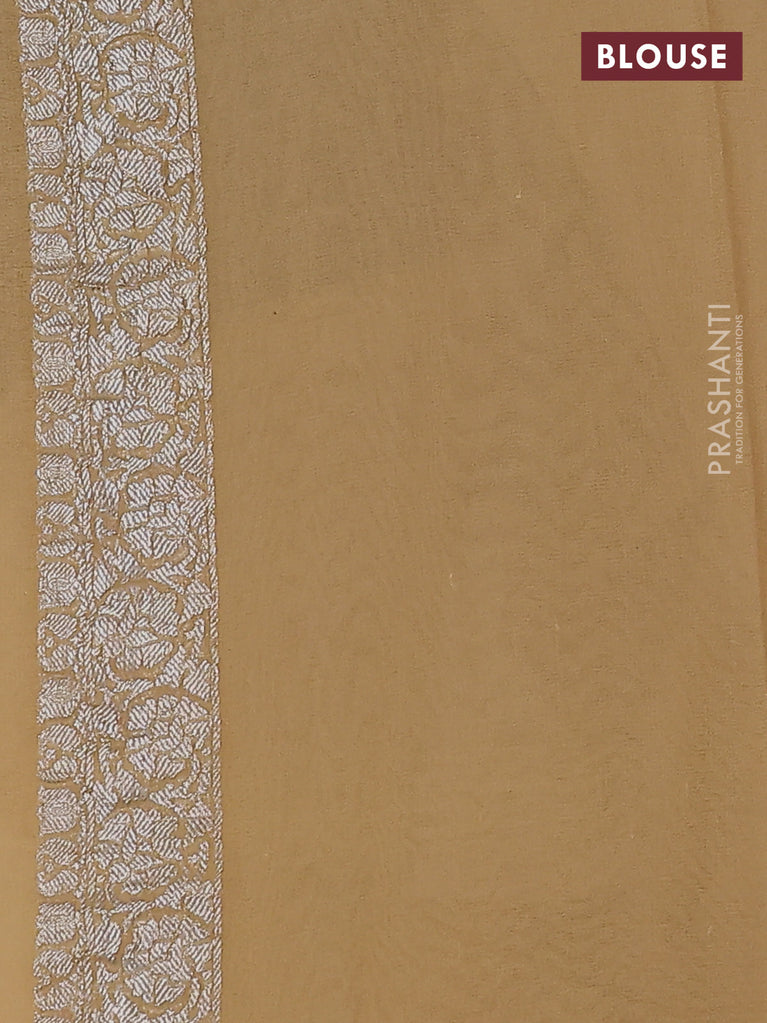 Banarasi chiffon silk saree sandal with silver zari woven buttas and floral silver zari woven border