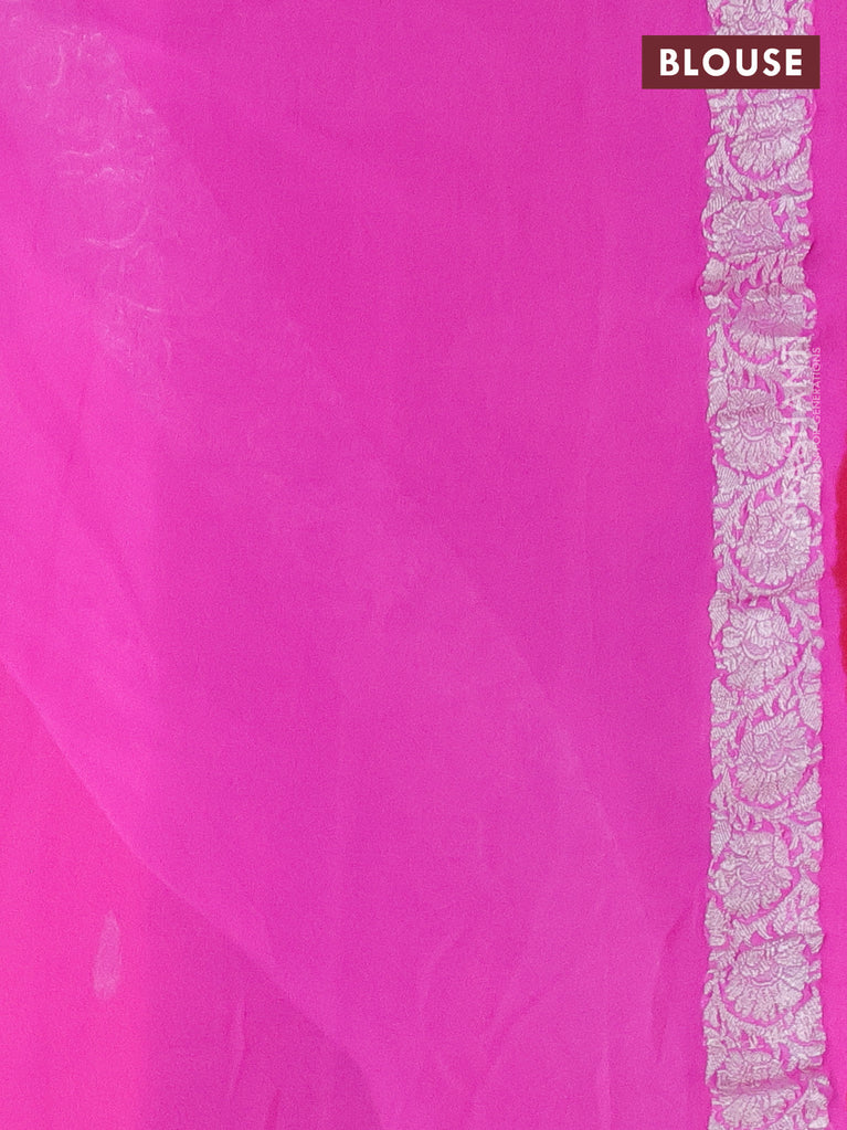 Banarasi chiffon silk saree red and pink with silver zari woven buttas and silver zari woven border