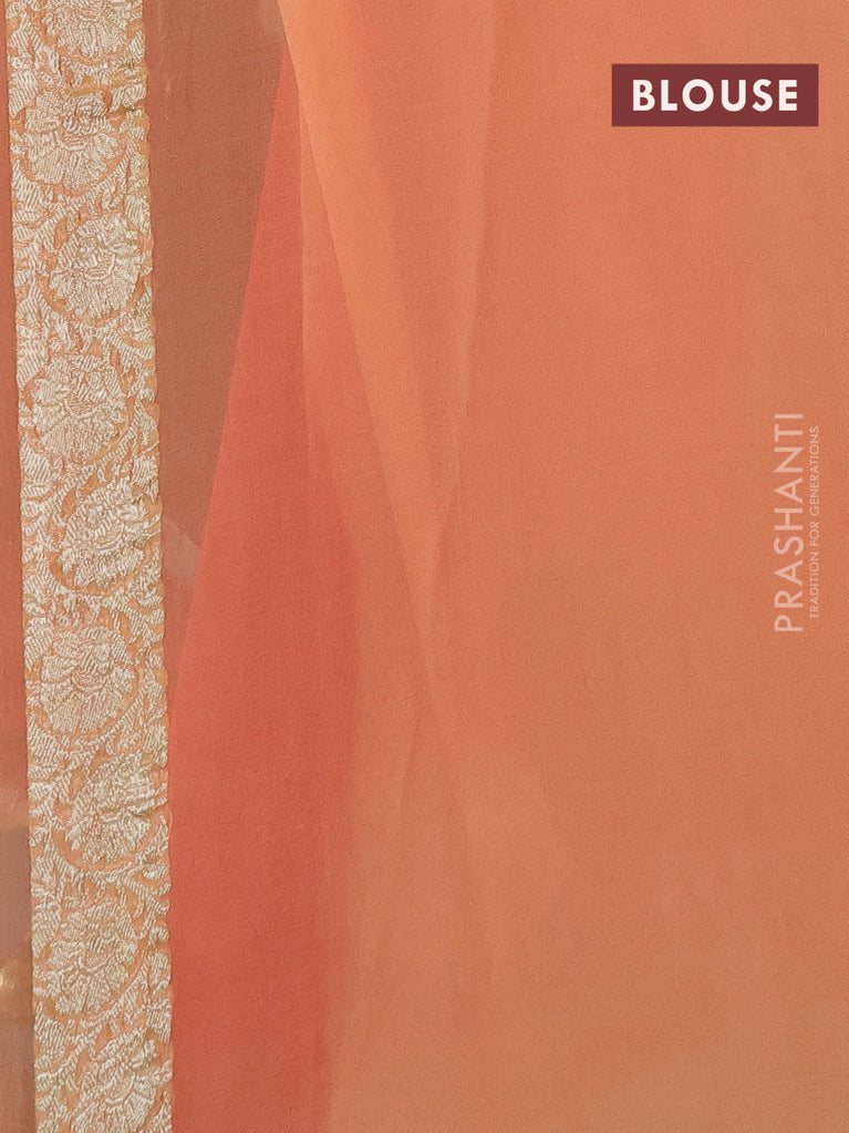 Banarasi chiffon silk saree red and pale orange with silver zari woven buttas and silver zari woven border