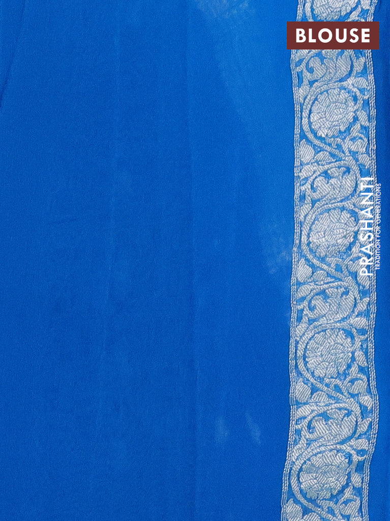 Banarasi chiffon silk saree royal blue with silver zari woven buttas and silver zari woven border