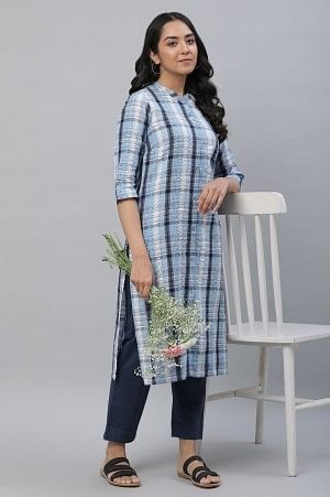 Simple yet chic! This floral print ocean wave kurta in round neck with button placket kurta has staright silhouette, side slits and three-quarter sleeves. Amph up your casual wardrobe with this pretty and comfortable kurta. You can style it for a casual day out, at office or while traveling.