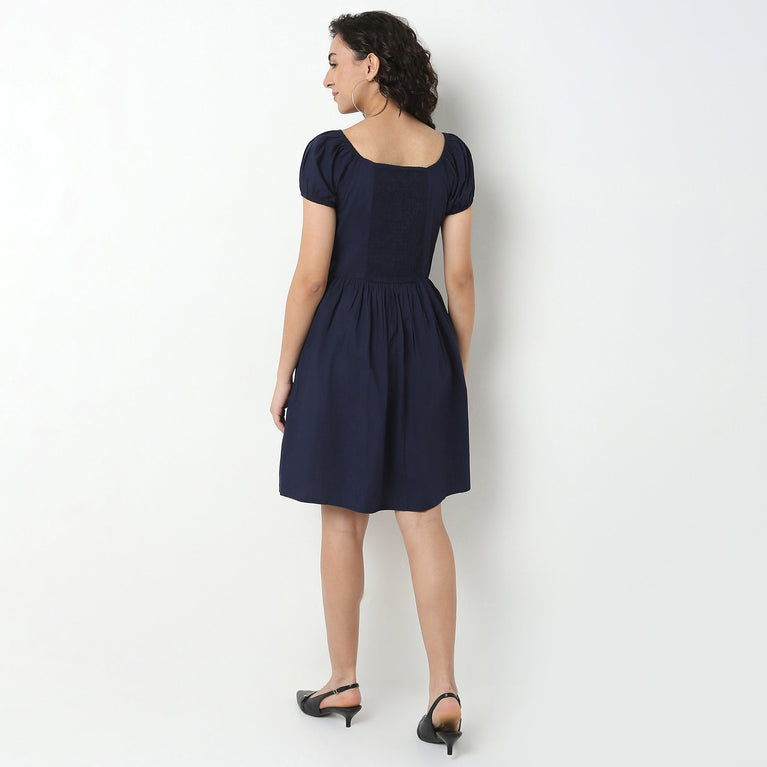 Elevate your wardrobe with this chic and versatile dress, designed to offer both comfort and style. Perfect for various occasions, this dress combines a flattering flared silhouette with a timeless round neckline, ensuring a modern yet elegant look.