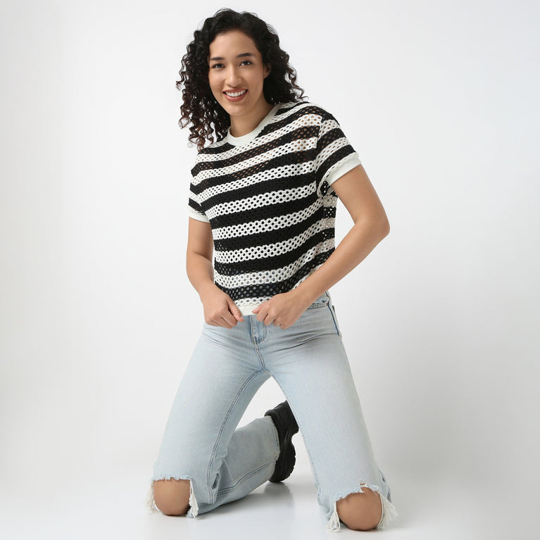 Betty Cropped Boxy Fit Fashion Tee With Half Sleeve