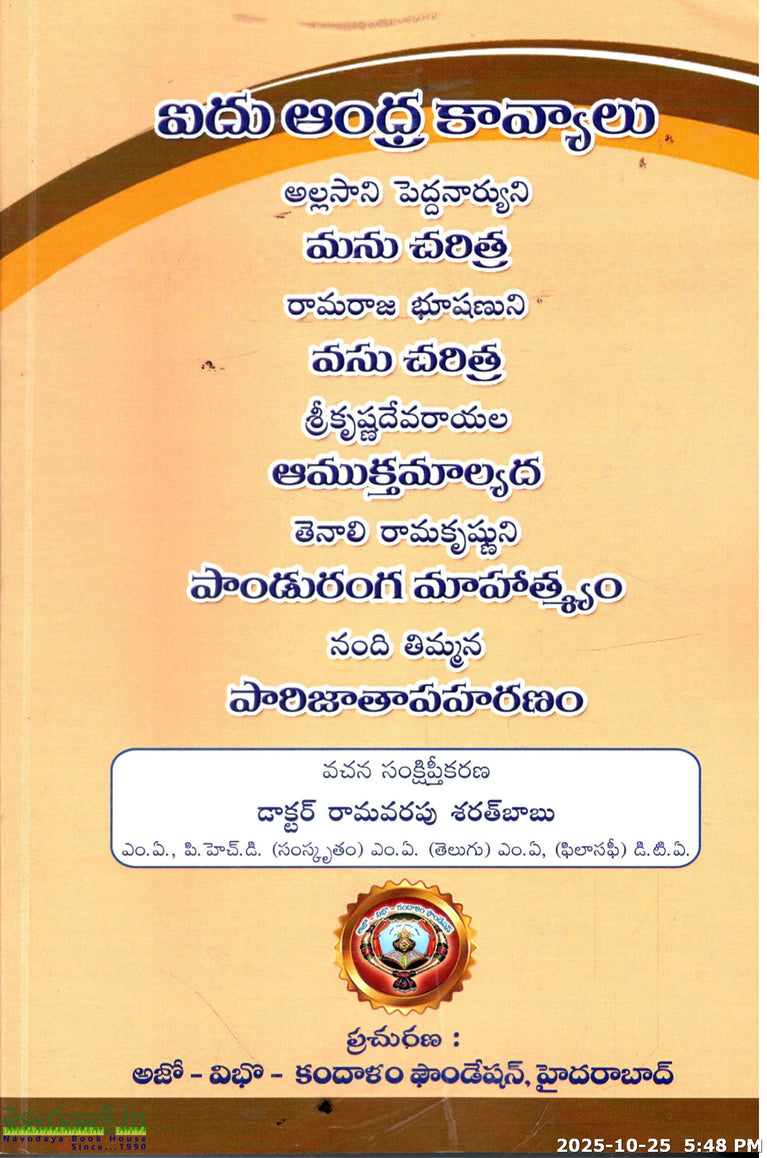 Aidu Andhra Kavyalu-Manu Charitra,Vasu Charitra,Amuktamalyada,Panduranga Mahatyam,Paarijathapaharanam