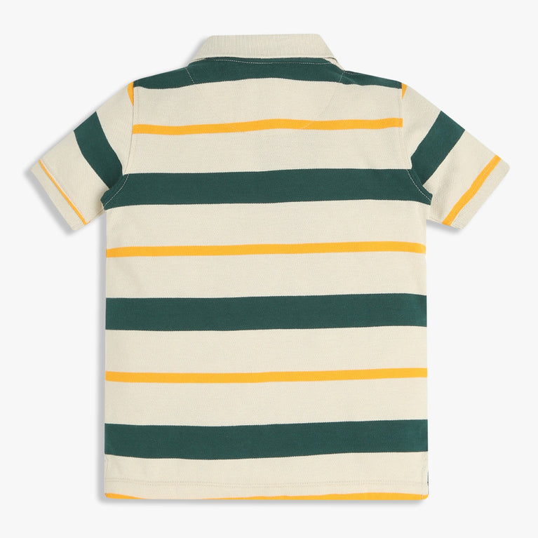 Boys Striped Sports Polo Neck Yarn Dyed T-Shirt