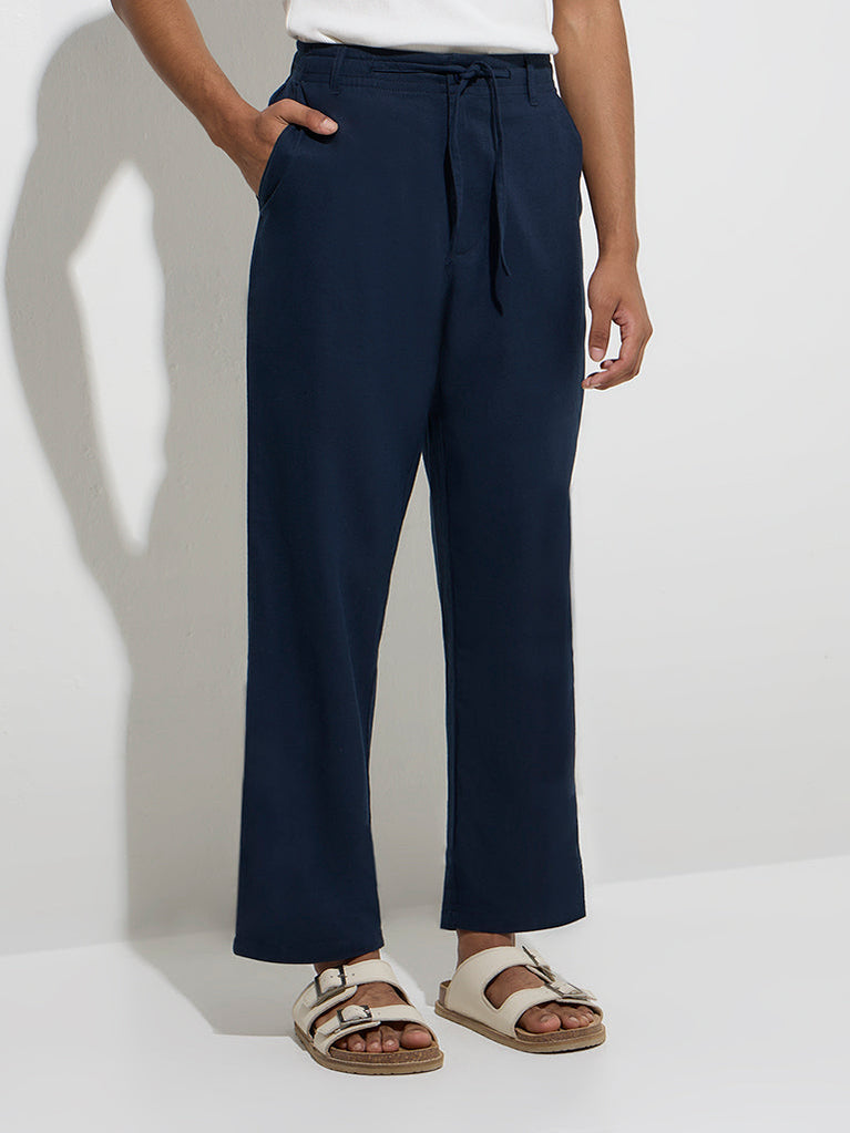 ETA Navy Relaxed-Fit Mid-Rise Cotton-Blend Pants